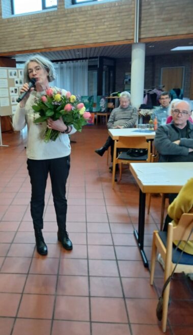 Bunt waren die Frühlingssträuße, mit denen Frau Pfarrerin Gommel-Packbier die Arbeit des Orgateams würdigte.